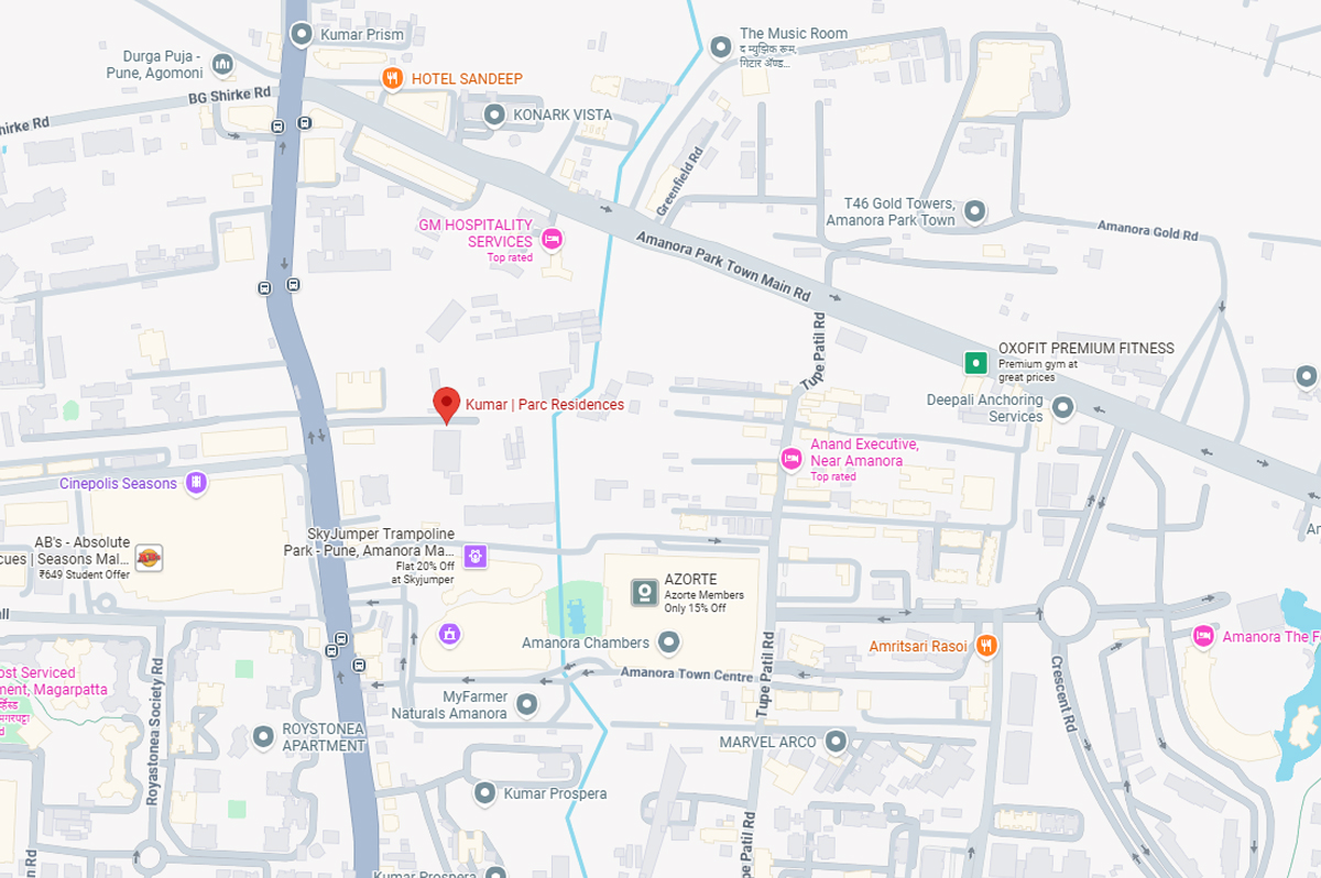 Kumar Parc Residences in Main Kharadi-Magarpatta Road, Pune, which visually showcases its prime setting opposite Seasons Mall—right in the heart of Magarpatta/Amanora Park Town, Hadapsar. A home in Kumar Parc Residences is a winner any way you look at it - be it location or space, amenity or community living, connectivity or proximity.